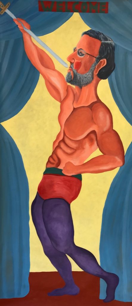 Por cierto, en la exposición has colado un autorretrato tuyo vestido de director de pista. ¿Esto es una forma de expresar el trabajo que has hecho montando la sesión o es el reflejo de un deseo de formar parte del grupo de los que han dirigido el mundo? Efectivamente, ja ja ja… es lo que más me gustaría. No ser el director de dirigir el mundo, sino el director de dirigir a todos los políticos del mundo, pero bueno… como eso no puede ser pues me he pintado como el introductor al circo, es decir, el director en el sentido de presentador que sale al principio del espectáculo. Simple y modestamente no es más que eso… y de paso reírme también de mí mismo un poco.