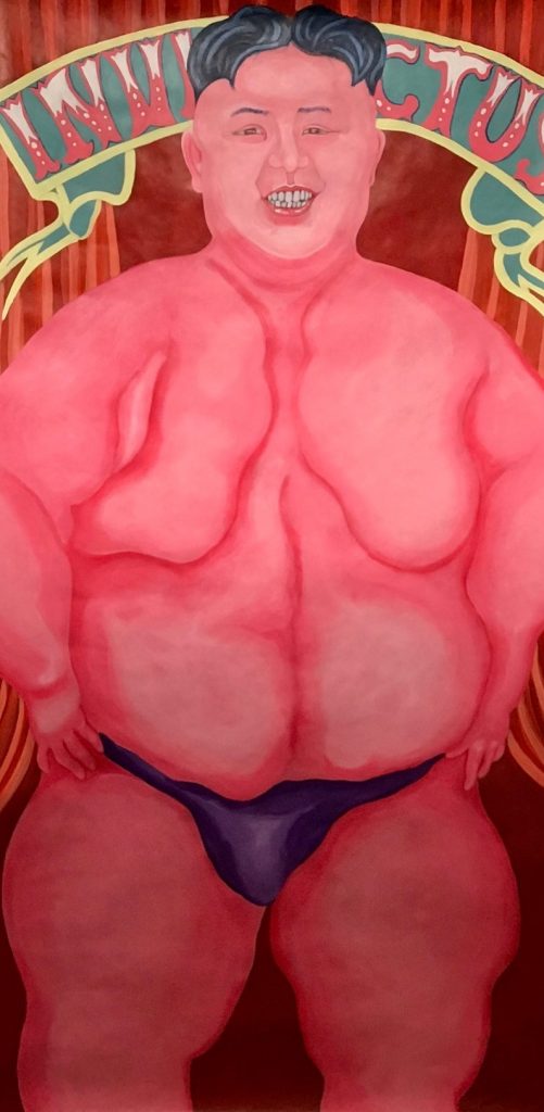 Supongo que el difícil ejercicio de retratar incluyendo el “alma” del personaje conlleva que se acentúen los sentimientos propios hacia dicho personaje. En este sentido, ¿qué retratos te han resultado especialmente intensos durante su realización? Es una pregunta complicada porque hay una parte de tensión ya dada por el propio hecho de pintar. Quiero decir, piensas… bueno, a ver si me sale. Es decir, vas con la creencia de que te va a salir, pero con el temor de que no te salga, y a veces hay rostros que se te tuercen sin que sepas muy bien por qué. Acabas de hacer uno que te ha quedado fenomenal y luego otro pues que no acabas… le das más vueltas y claro… ahí hay una tensión. Otra es la derivada de la personalidad de los que retratas, hay algunos con los que te ensañas más porque te parece que ridiculizarlos un poco pues se lo merecen. Por ejemplo, el coreano que acaba de matar a su hermano. Este tipo a mí me parece muy repugnante porque además es uno de los pocos dictadores completamente totalitarios que quedan en este mundo, habrá tres o cuatro o media docena, por ahí… hacer su retrato me resultó muy desagradable.