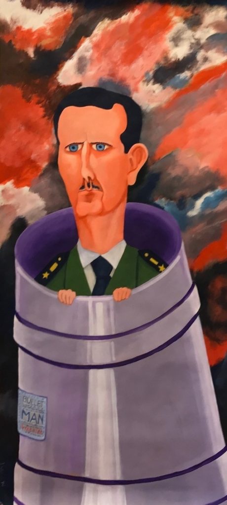 ¿Si pudieras qué retrato te hubiera gustado no tener que pintar, es decir, a quién excluirías de esa cohorte de poderosos que dirigen el mundo? No sé… Desde el momento que adoptas una posición irónica hay una distancia con lo haces y, en muchos casos, escoges a determinados personajes para meter el dedo en la llaga. Eso es así. En ese sentido hay poco apego afectivo. Sí que es verdad que me planteé el caso de Rita Barbera porque murió al poco tiempo de pintarlo, y por respeto pensé si era correcto ponerlo en la exposición, pero bueno como aparece simplemente vendiendo caloret fallero me pareció razonable que estuviera. Sin embargo, también murió Fidel y no me importó. Ni me lo planteé porque me pareció que no es lo mismo ni por el forro con todo lo que hizo en Cuba. Rita tenía sus más y sus menos y andaría o no andaría en esas corruptelas que no se han probado del todo todavía, pero bueno al fin y al cabo tenía algún rasgo que era más simpático que el otro bruto de allá.